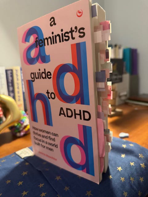 So naturally, I did what anyone (???) would do next- I ran to my local Barnes & Noble and scoured the shelves for books about ADHD. I knew of one popular title, so I found that first. However, when I picked it up, it looked okay… but the vibes were off. So I looked, and looked again, and then I looked around that shelf again, and soon landed on a book I’ve mentioned before, A Feminist’s Guide to ADHD: How women can thrive and find focus in a world built for men by Dr. Janina Maschke. I figured if anything I was seeing on this social media post was true, it would be validated and presented in more detail by an expert. I took the book home then I proceeded to lock in (ahh, there’s an ADHD word for this too: hyperfocus) and read the book, cover-to-cover, over the course of about three days. Which I need to add right here, is not typical for me. I am a notoriously slow reader! Even my most recent five-star book took me a week to finish.